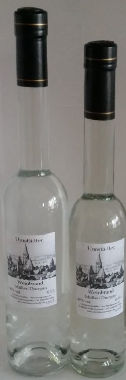 0,5 l Weinbrand Müller-Thurgau, Alk. 40%, Preis: 14,50 € (Ltr. 29,00 €)