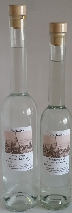 0,5 l Tresterbrand mit Anis und Kümmel, Alk. 40%, Preis: 11,50 € (Ltr. 23,00 €)